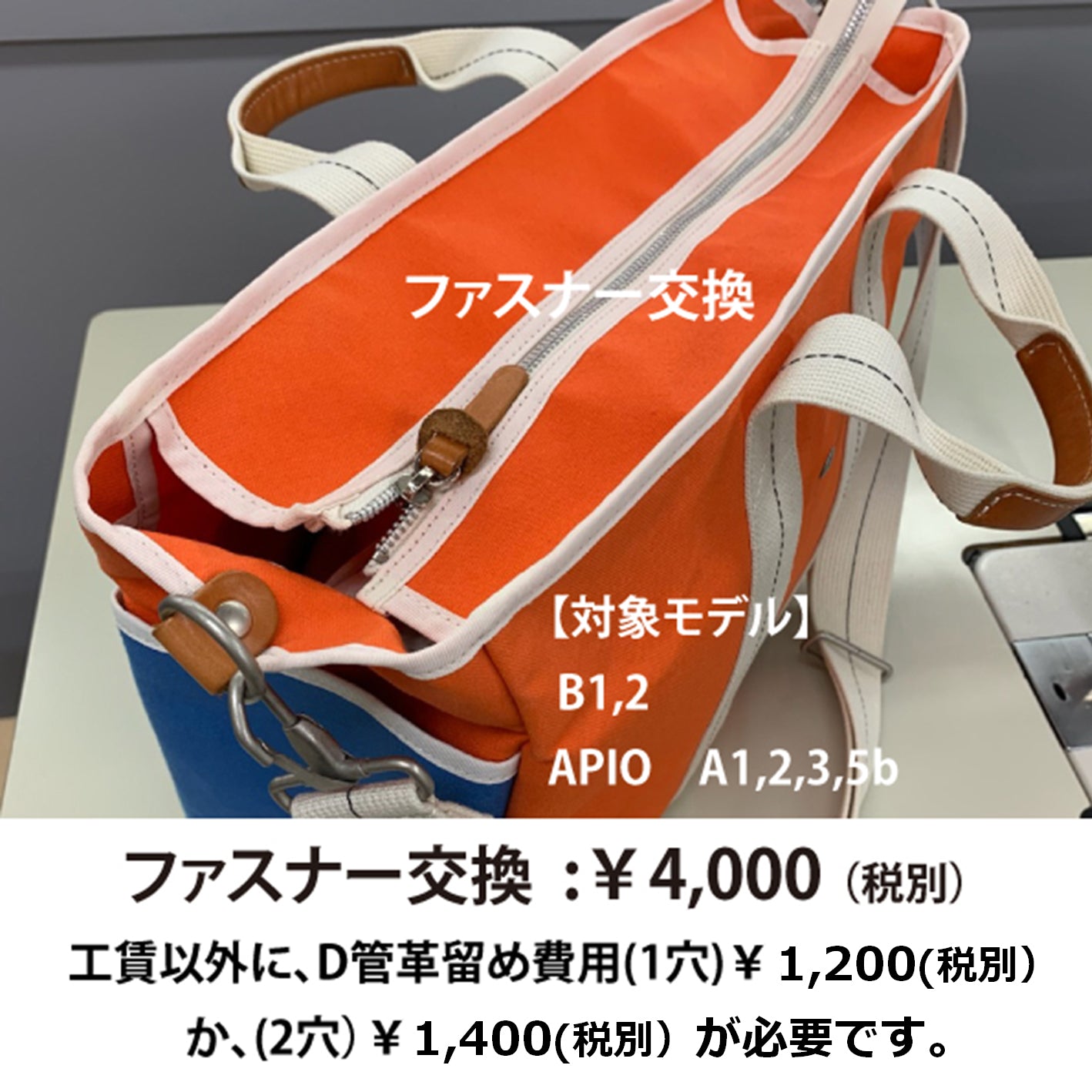 価格ファスナー交換工賃:¥4,000 別途D管革留め費用(1穴)か(2穴)が必要