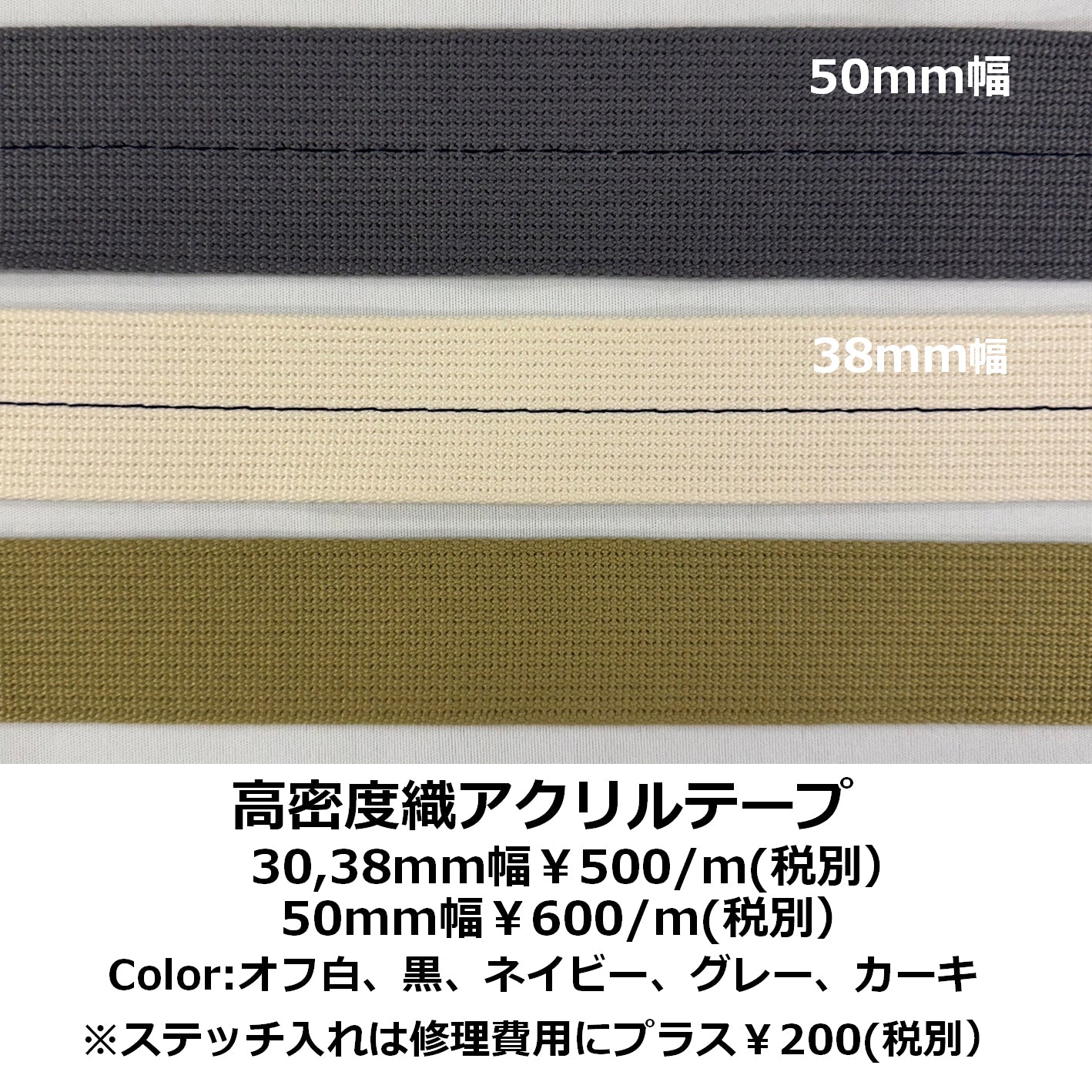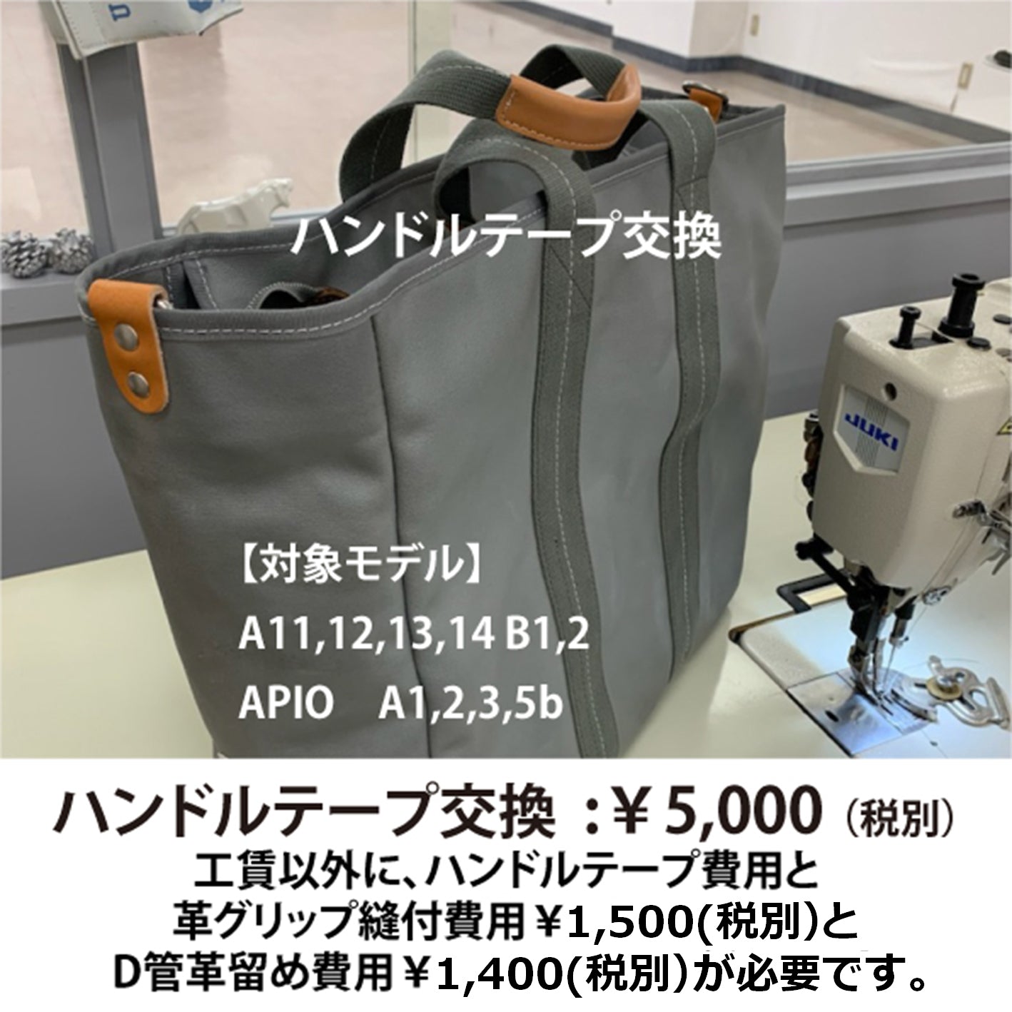 価格ハンドル交換工賃:¥3,000テープ代金30mm,38mm¥500/m 50mm¥600/m ハンドルスティッチ希望は別途¥200