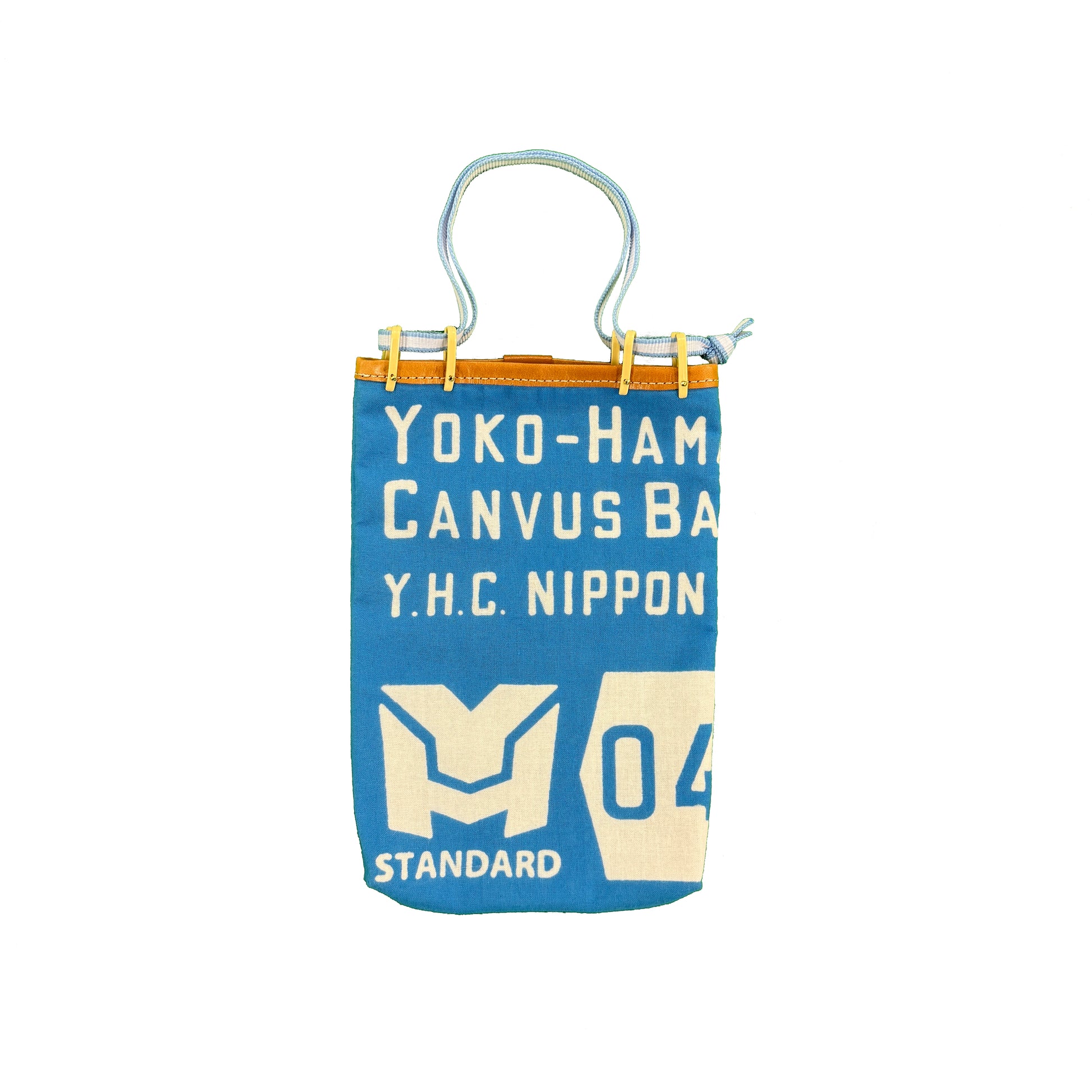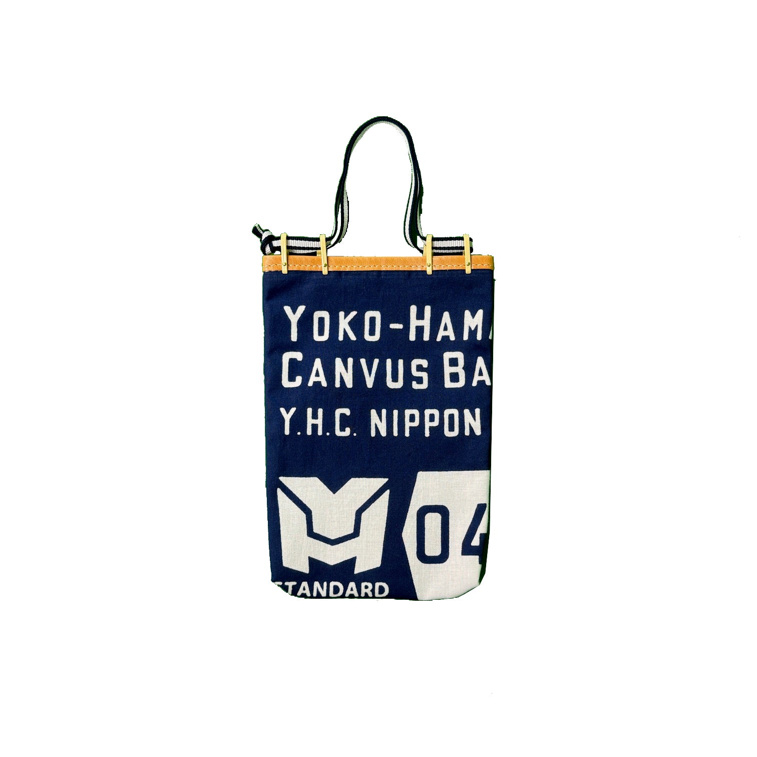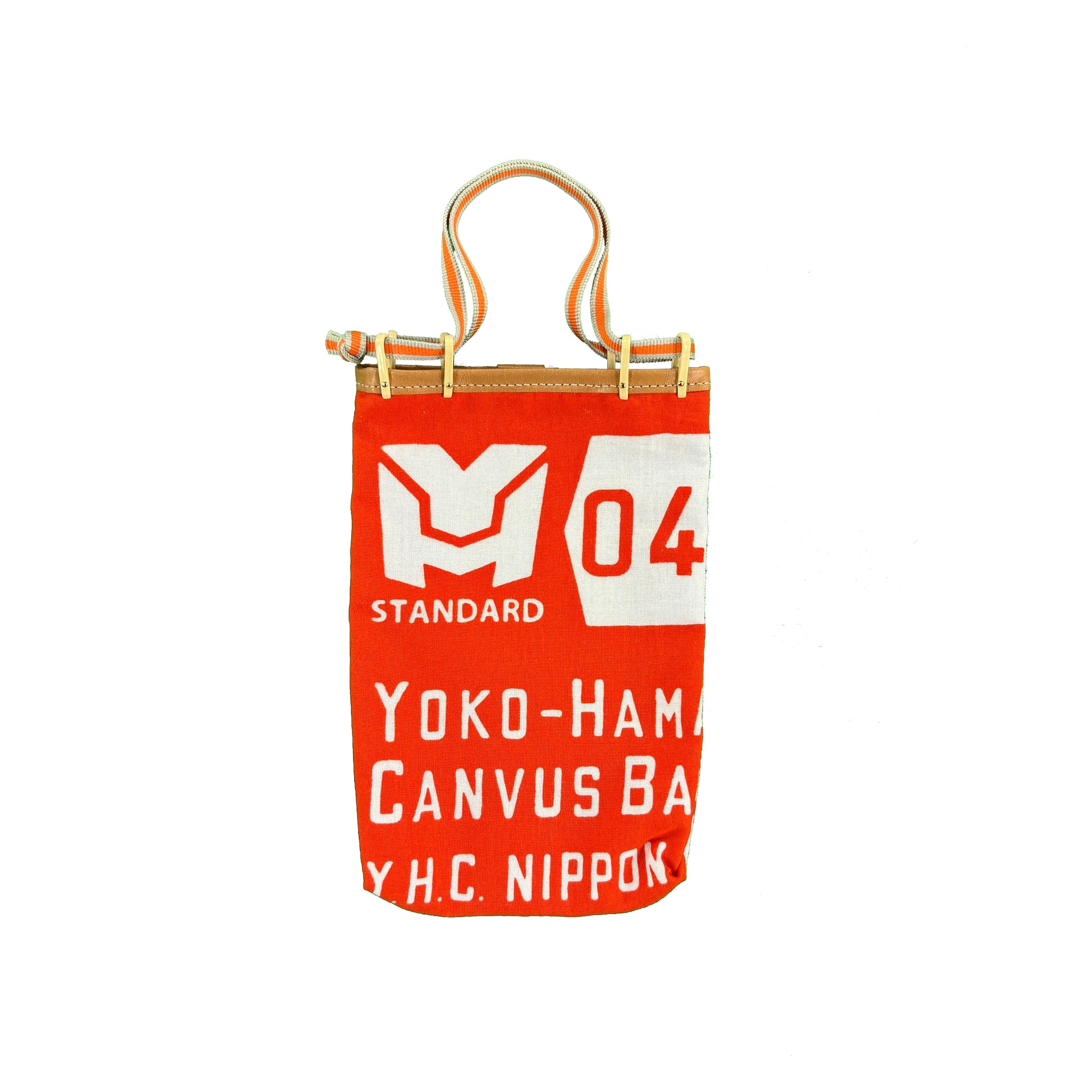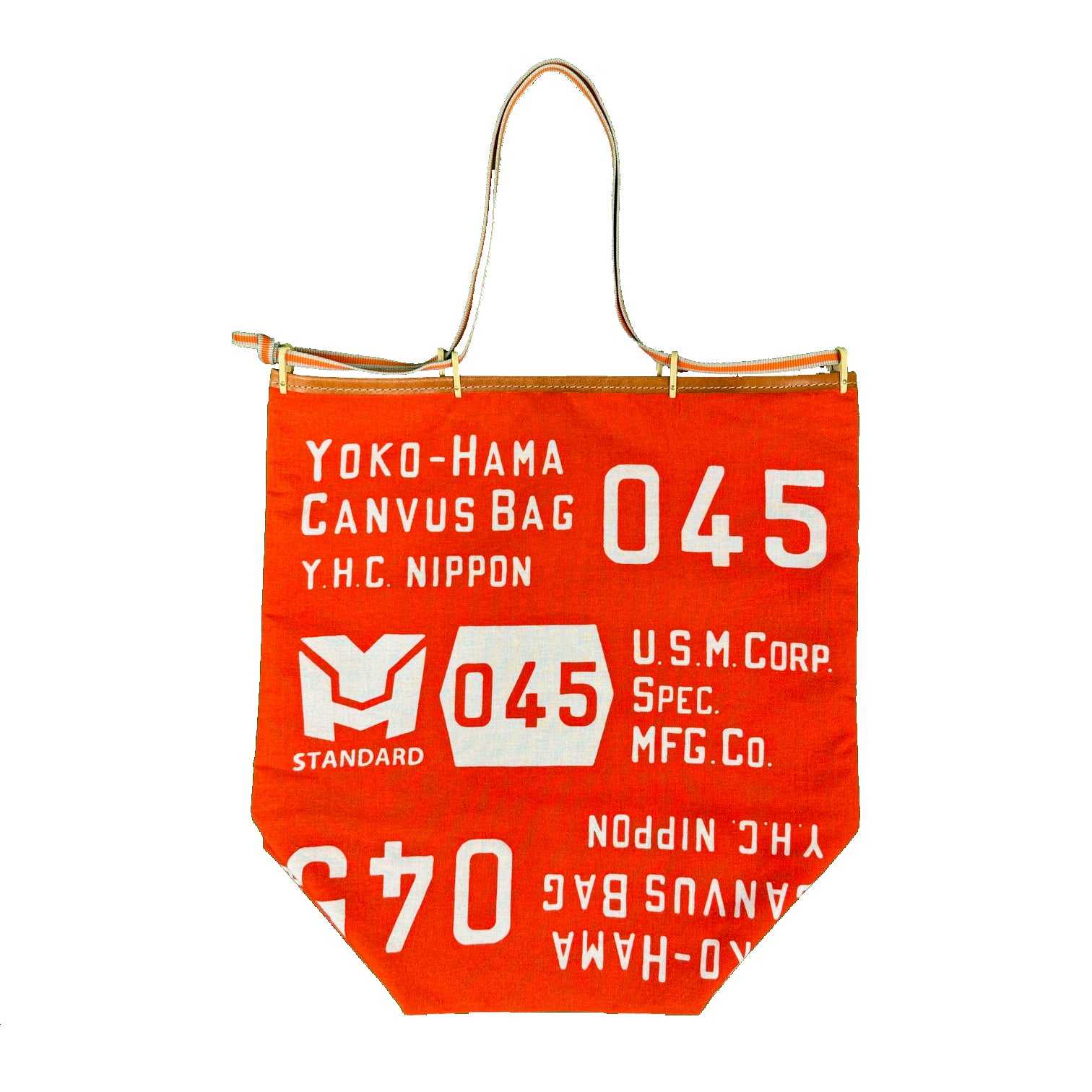 045のプリントが印象的な、浜松注染めプリントの手拭いで製作した合切バッグ。日常使いから、夏の浴衣にも。