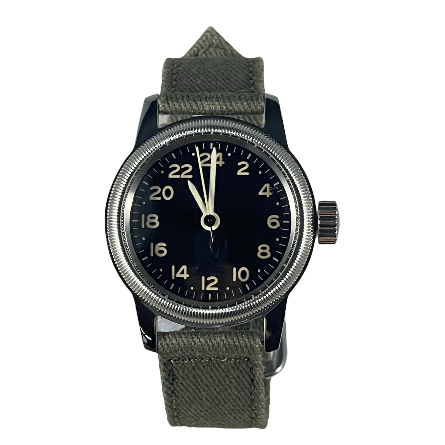 24-11b-01GF / A-11 24H 黒文字盤 緑布ストラップ
