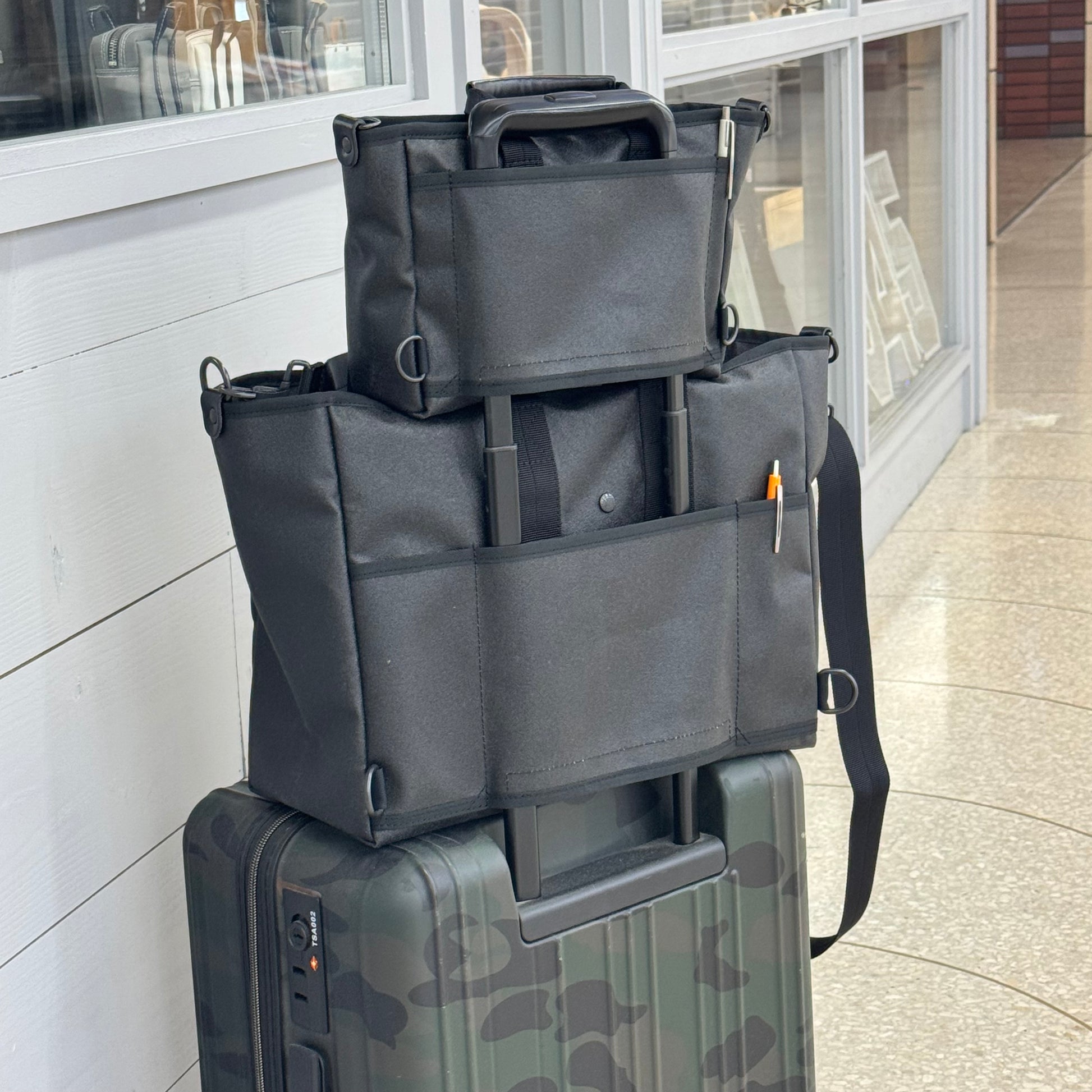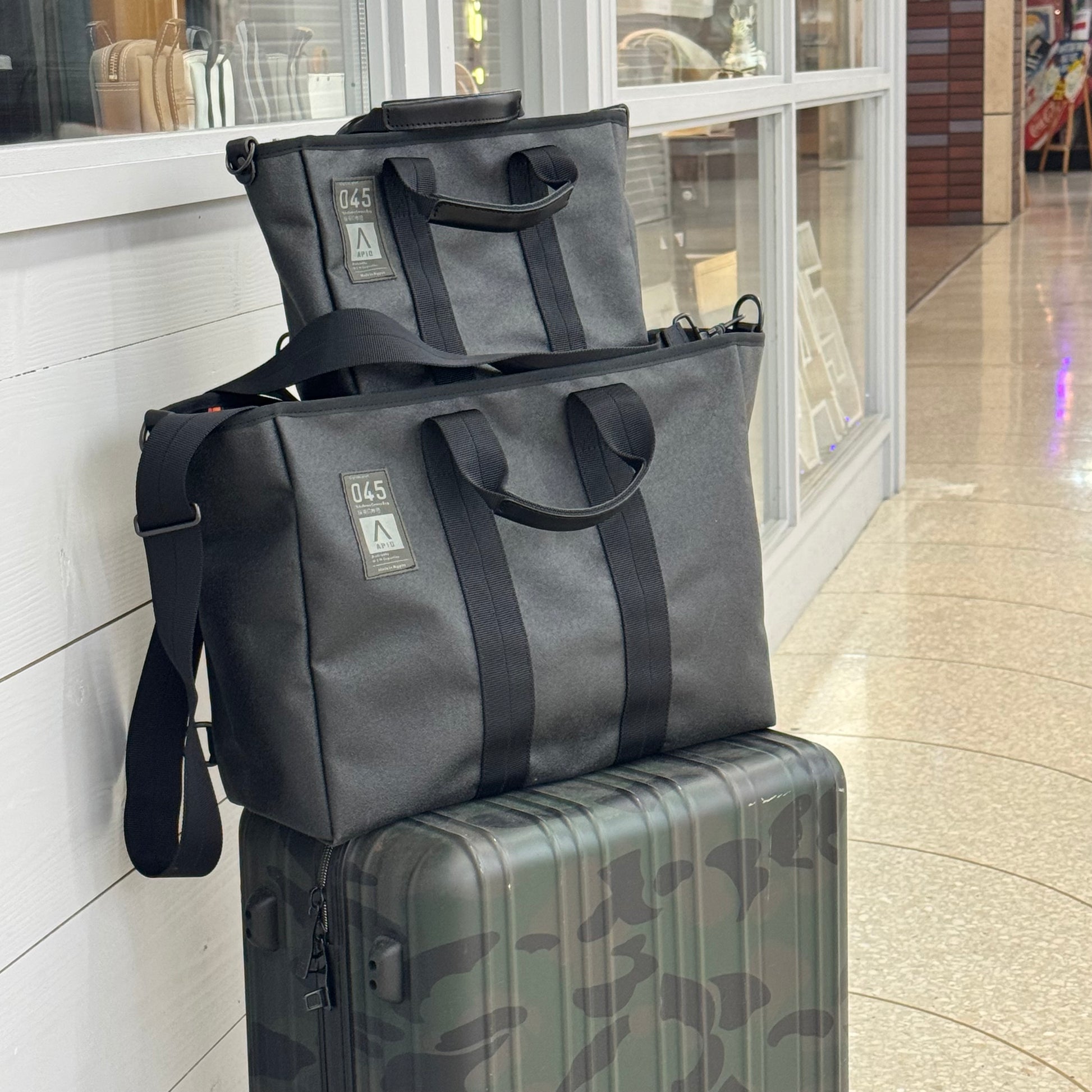 バッグ内側に6面内ポケットを備えているとても使いやすい大型トートバッグです。大容量のグランデはキャリーケースに取り付けられるトローリースリープ付きだから旅行やビジネスバッグとしても。