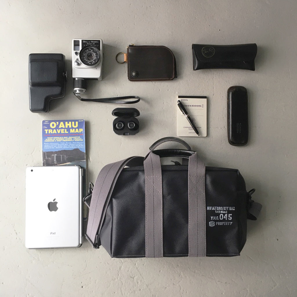 横濱帆布鞄の大人気シリーズAviators Kit Bag。最小のトラベラーズサイズ。B5サイズ感でもマチ幅10cm,見た目以上の収納力!